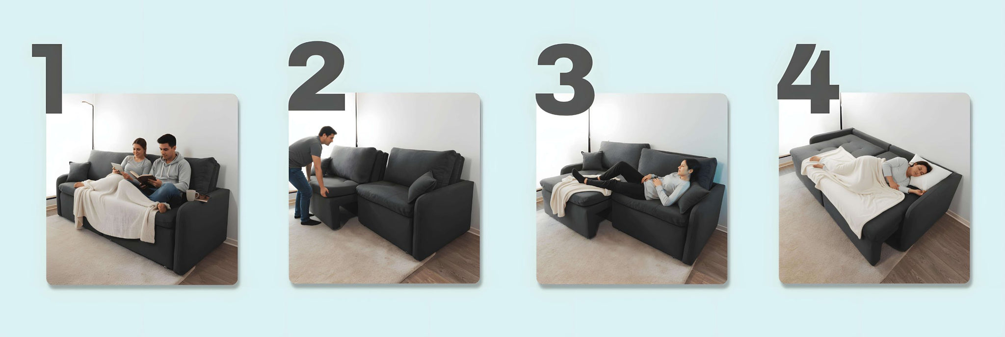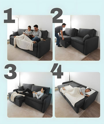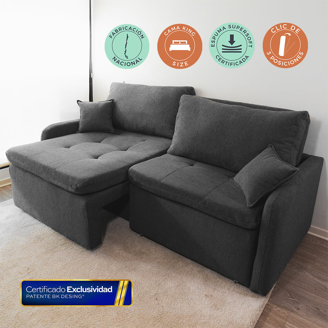 El Bellagio se transforma de un sofá elegante a una amplia cama, lista para regalarte el descanso que mereces.