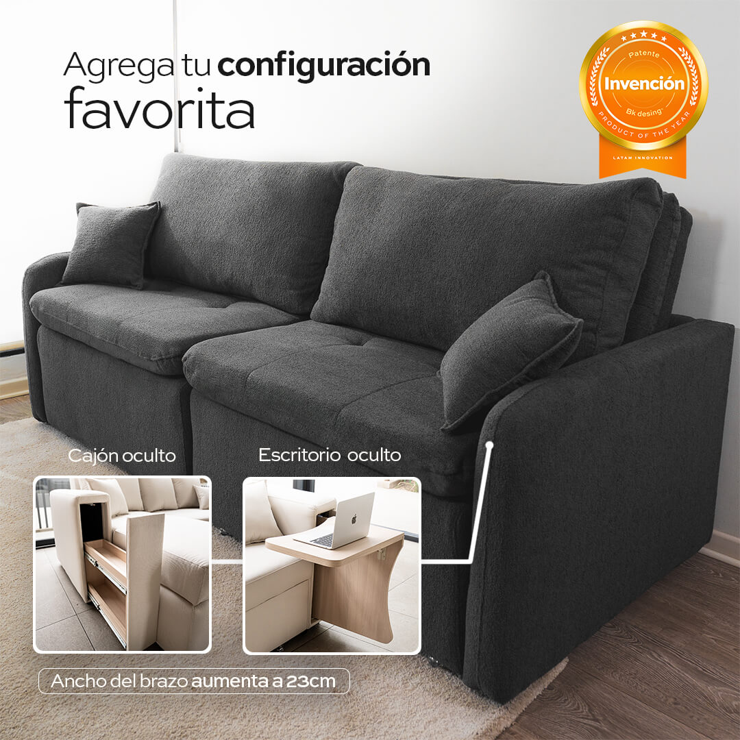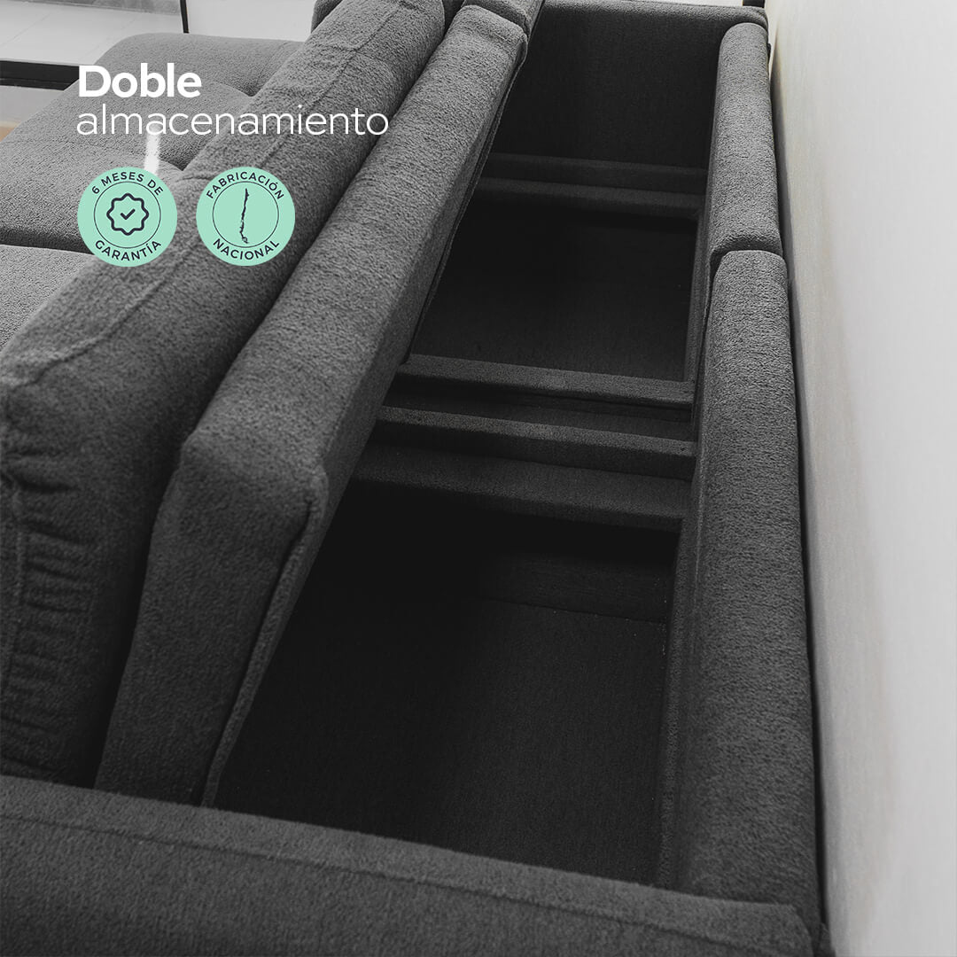 Dos compartimentos amplios y ocultos, perfectos para guardar mantas, almohadas o gadgets y mantener tu living siempre impecable.