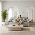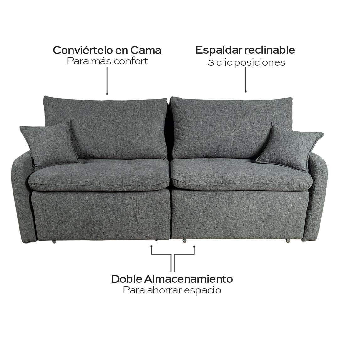 El Bellagio es un sofá cama extensible que une diseño moderno y confort envolvente. Con respaldo reclinable, cama amplia y doble almacenamiento oculto, ofrece estilo, practicidad y un descanso suave como una nube.