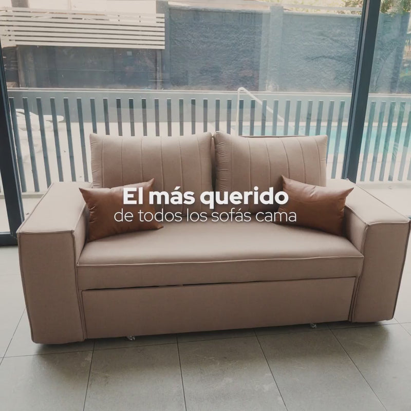 El sofá cama Lyon combina comodidad y estilo con una presencia imponente y cojines tipo tubo que te abrazan. Se convierte en cama en segundos, ideal para visitas inesperadas o descansar sin complicaciones.
