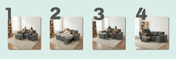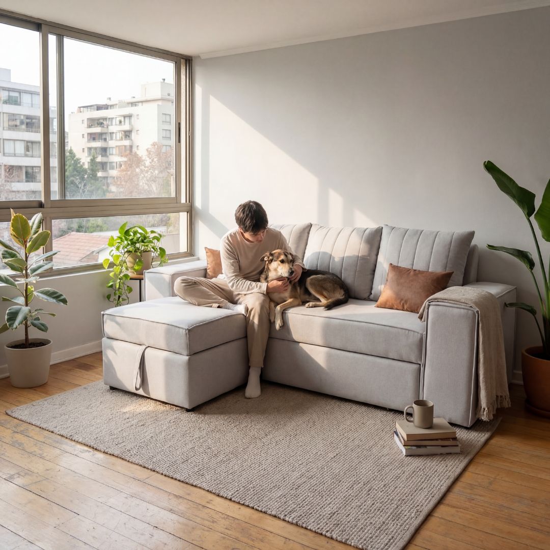 Aspire regularmente con baja succión para mantenerlo libre de polvo, limpie derrames de inmediato con un paño absorbente, deje que su sofá se seque naturalmente en un área bien ventilada.