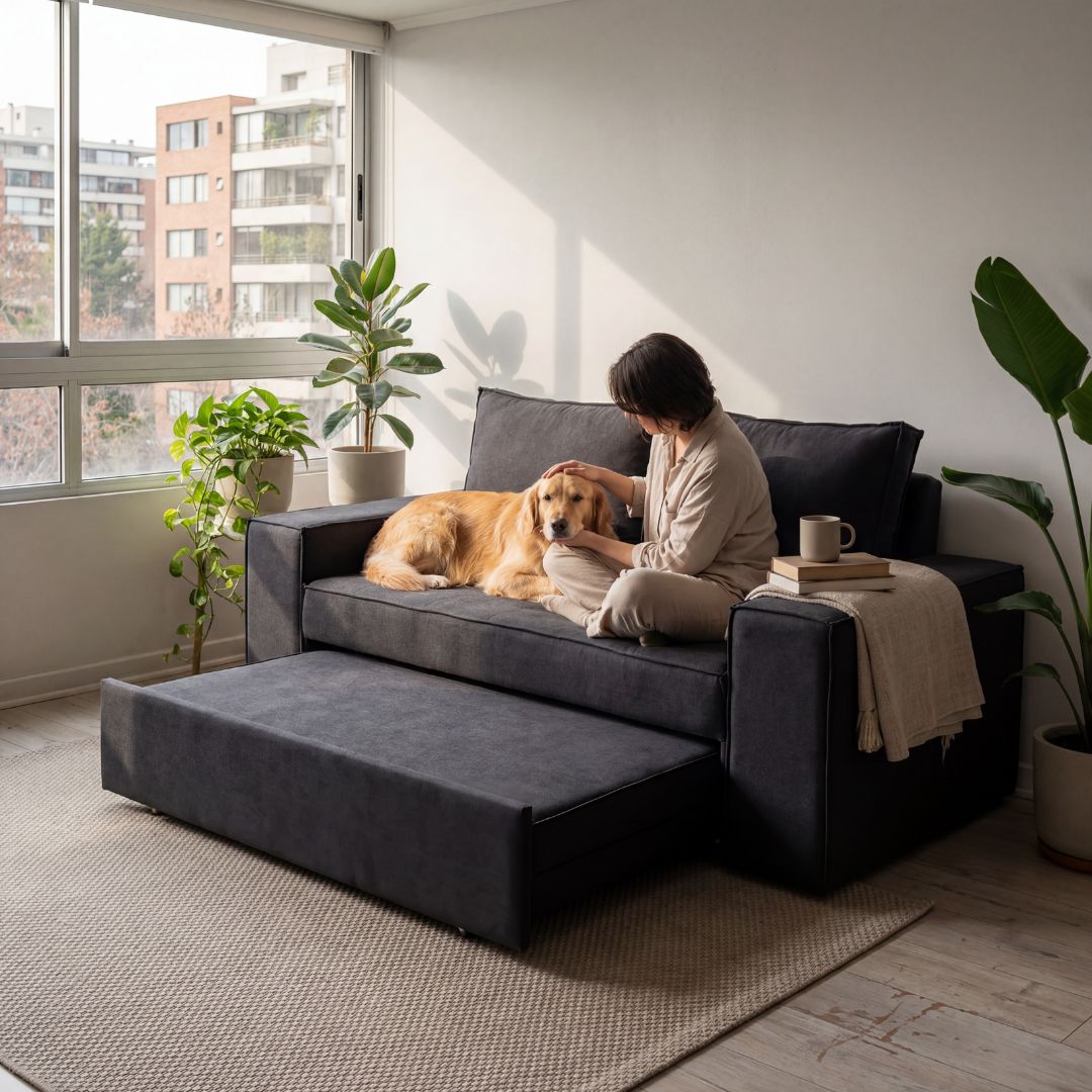El extraordinario Sofá Cama Marsella fusiona a la perfección estilo y confort. Sus robustos brazos y cojines tubulares ofrecen una experiencia acogedora y moderna. Pero eso no es todo. Transformarlo en cama es tan sencillo como un abrir y cerrar de ojos, perfecto para visitas inesperadas o momentos de descanso sin complicaciones.