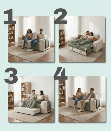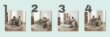 Aspire regularmente con baja succión para mantenerlo libre de polvo, limpie derrames de inmediato con un paño absorbente, deje que su sofá se seque naturalmente en un área bien ventilada.