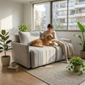 El Sofá Cama Mónaco es un sofá que se convierte fácilmente en una cómoda cama, perfecto para optimizar espacios. Incluye un cajón de almacenamiento secreto, ideal para guardar ropa de cama o accesorios.