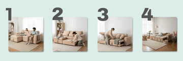 Aspire regularmente con baja succión para mantenerlo libre de polvo, limpie derrames de inmediato con un paño absorbente, deje que su sofá se seque naturalmente en un área bien ventilada.