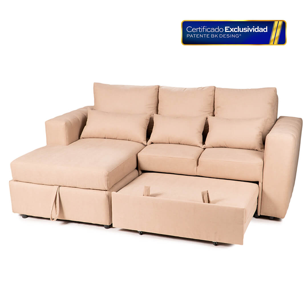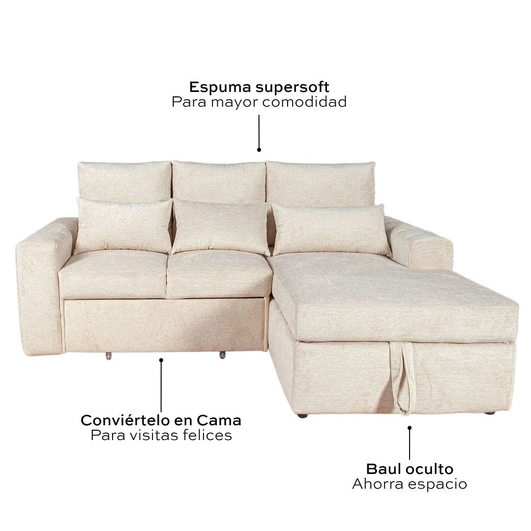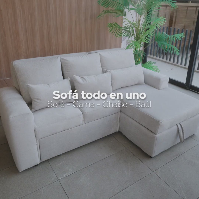 El sofá cama Mykonos es una pieza que fusiona a la perfección estilo contemporáneo, funcionalidad y máximo confort. Diseñado para optimizar cualquier espacio, este sofá cama seccional es la solución ideal para quienes buscan comodidad y elegancia en un solo mueble.
