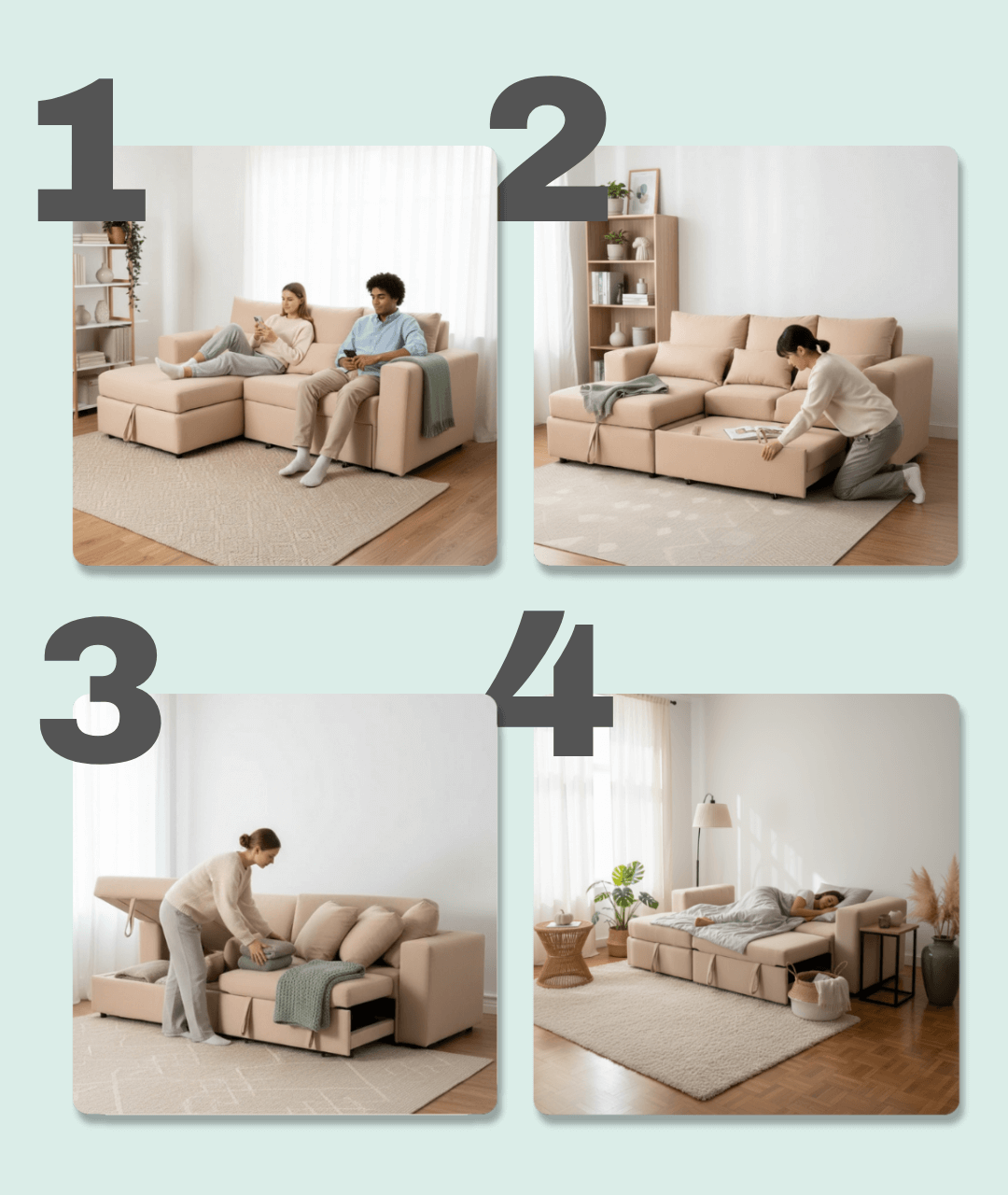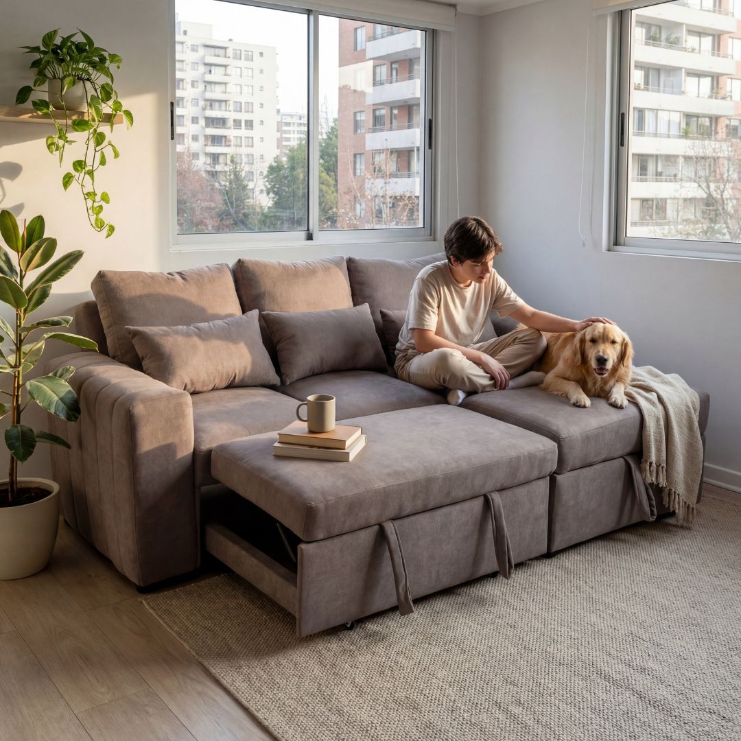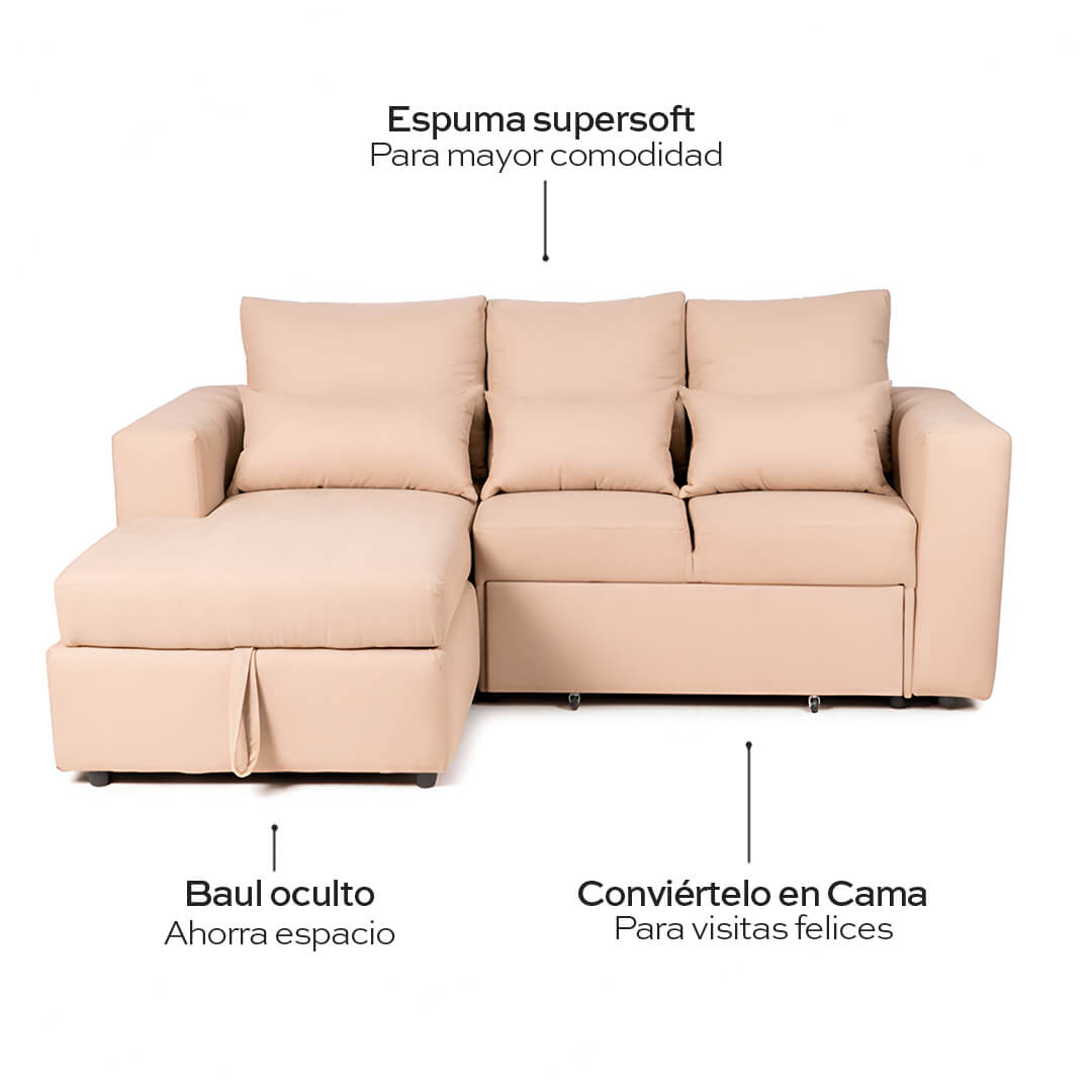 El sofá cama Mykonos es una pieza que fusiona a la perfección estilo contemporáneo, funcionalidad y máximo confort. Diseñado para optimizar cualquier espacio, este sofá cama seccional es la solución ideal para quienes buscan comodidad y elegancia en un solo mueble.