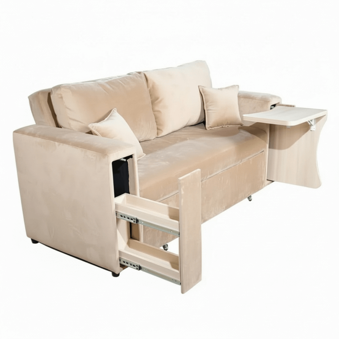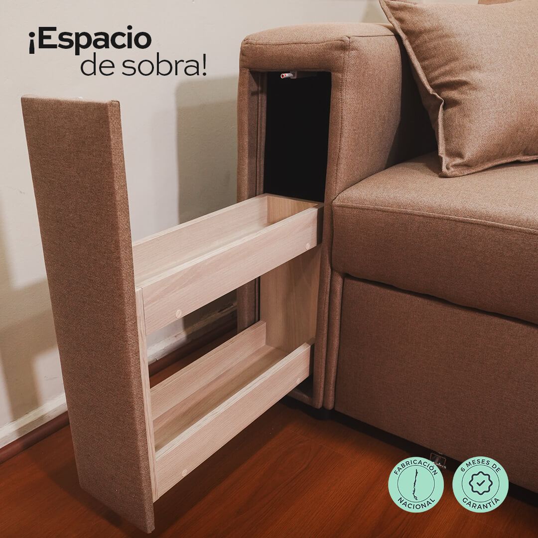 El Sofá Cama Siena es sofá de día y cama de noche, con un diseño ergonómico para un descanso sin compromisos. Personalízalo con un gabinete o escritorio en cada brazo y aprovecha su almacenamiento oculto para mantener todo en orden.